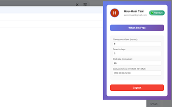 WhenFree es una herramienta gratuita de Chrome diseñada para simplificar la programación de reuniones y la coordinación de horarios. Permite a los usuarios generar, con un solo clic, una lista de sus franjas horarias disponibles basándose en los eventos de su Google Calendar. Esta funcionalidad elimina la necesidad de consultar manualmente el calendario, facilitando la copia y el pegado de la disponibilidad en correos electrónicos o aplicaciones de chat.